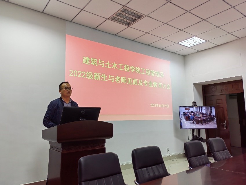 10月19日晚,我院工程管理系在综合实验楼206会议室成功召开2022级新生与教师见面及专业教育大会,工程管理系2022级全体学生参会,会议由系负责人张宗领主持,肖琪聃副院长、冀鹏副书记、王颂老师、马文强老师、陈良琼老师、陈晓宇老师、梁维云老师、袁亮老师出席了此次活动。